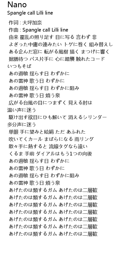 | [00:01.000] | zuo qu : Spangle call Lilli line |