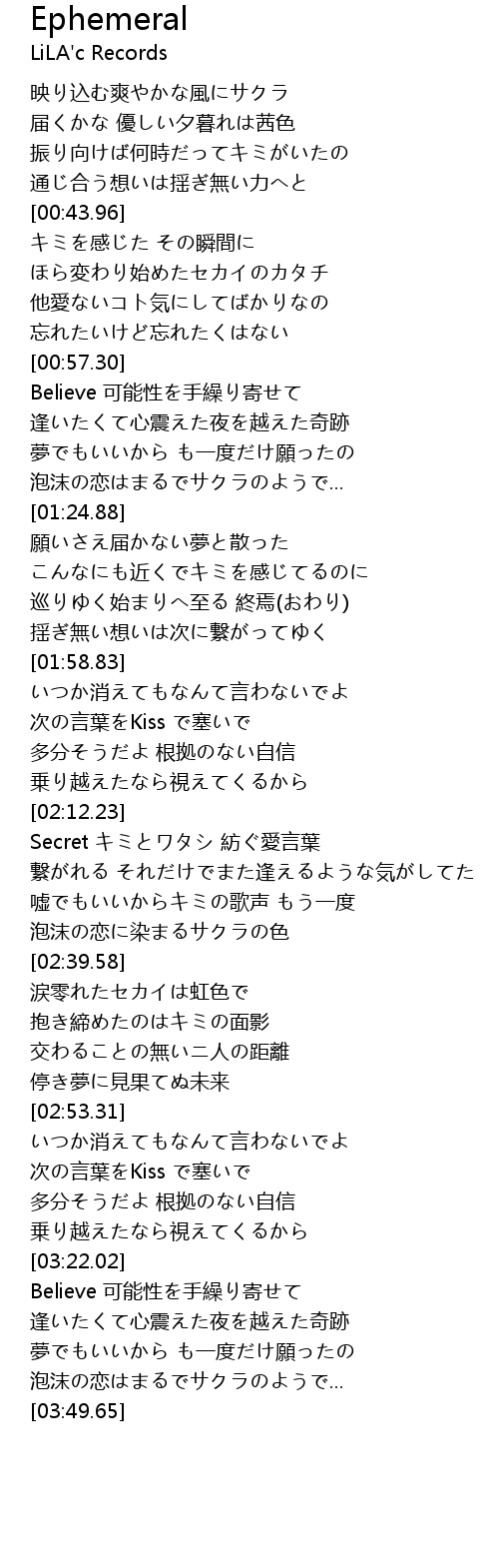 | [02:12.58] | Secret キミとワタシ 紡ぐ愛言葉 |