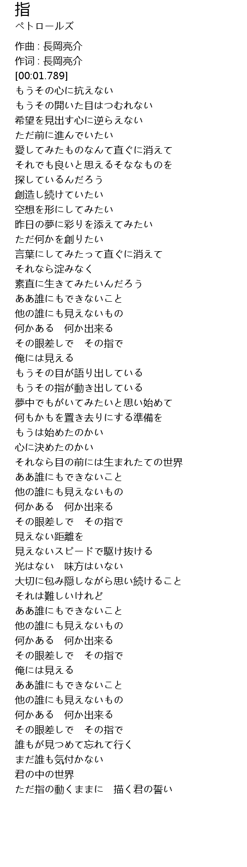 | [00:01.162] | 作词 : 長岡亮介 |