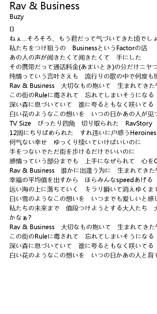 | Rav & Business 大切なもの抱いて 生まれてきた气がする近顷 | |