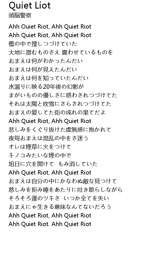 | [00:05.000] | Ahh Ouiet Riot, Ahh Quiet Riot |