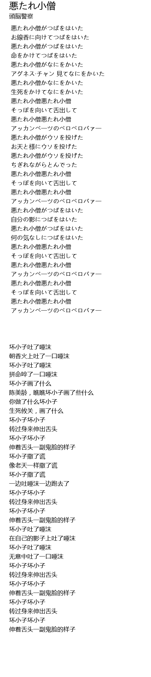 アッカンべ一ツのべロべロバァ一 |