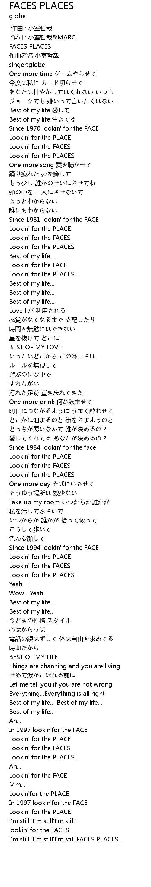 | [05:54.79] | I'm still 'I'm still'I'm still FACES PLACES… |