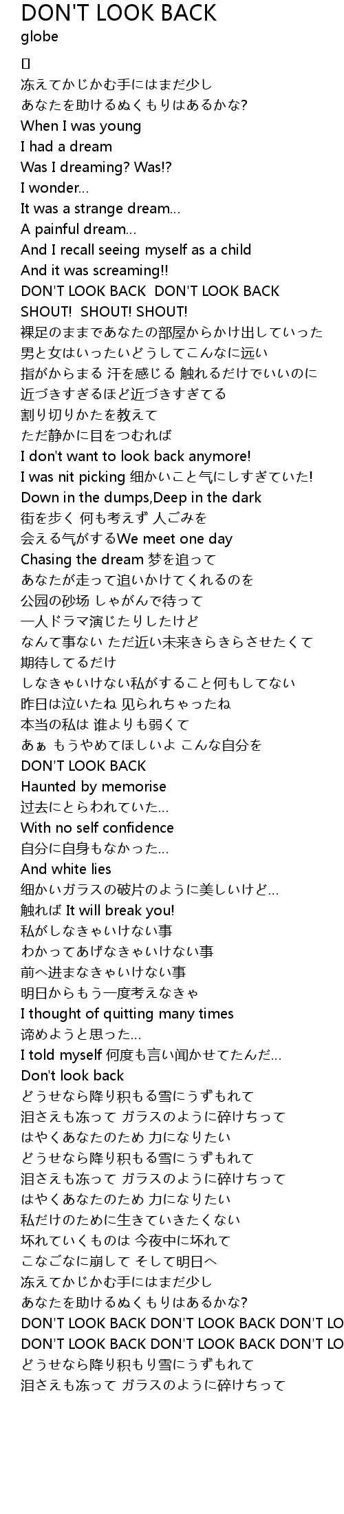 | DON'T LOOK BACK DON'T LOOK BACK DON'T LOOK BACK | |