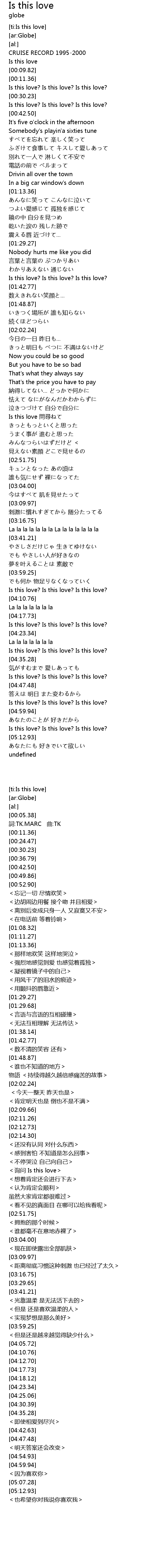 | [04:18.12] | Is this love? Is this love? Is this love? |