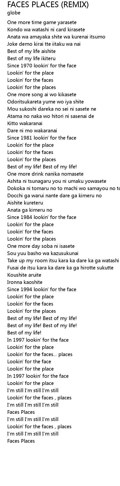 | Lookin' for the faces , places | |