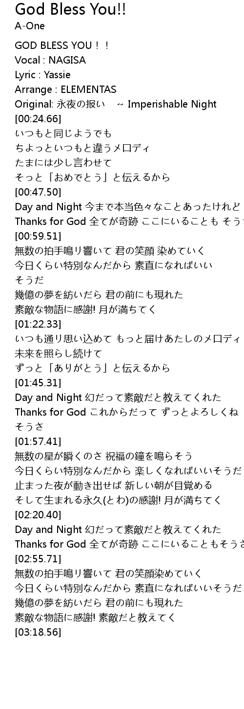| [00:00.42] | GOD BLESS YOU!! |