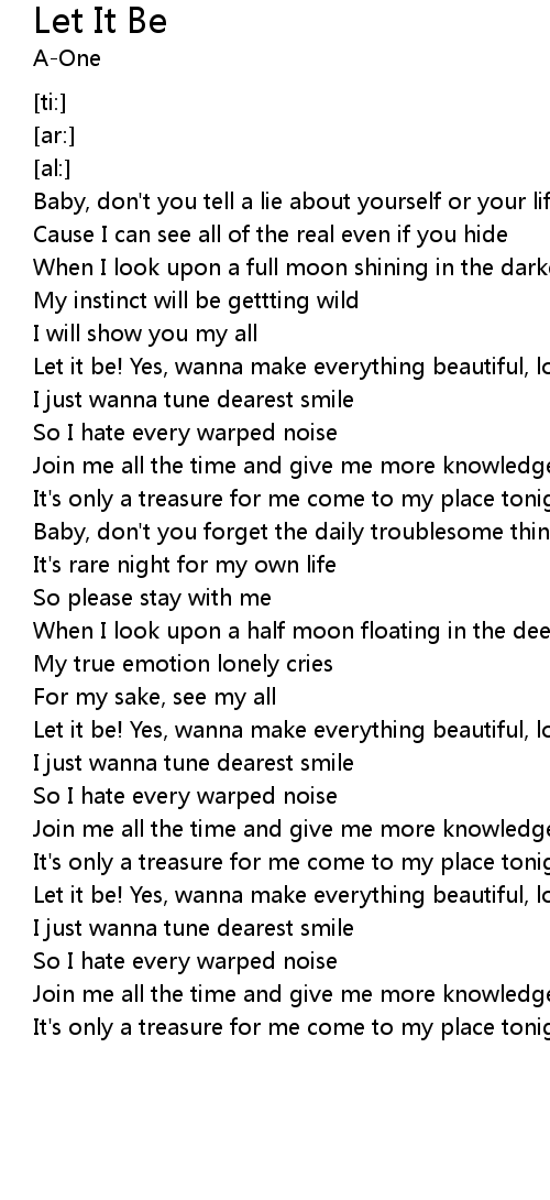 Let it be! Yes, wanna make everything beautiful, lovely history |