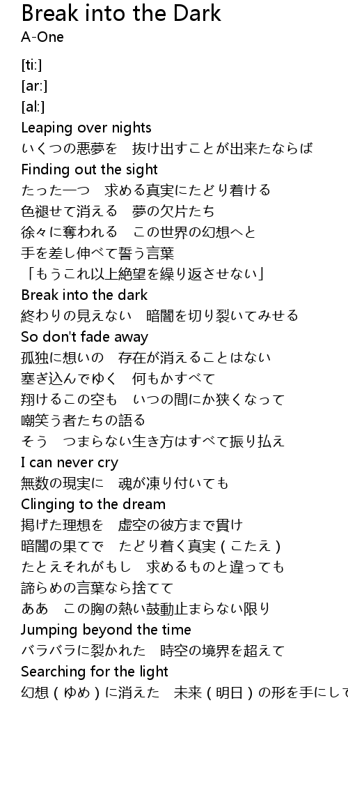 | [01:37.22] | Break into the dark |