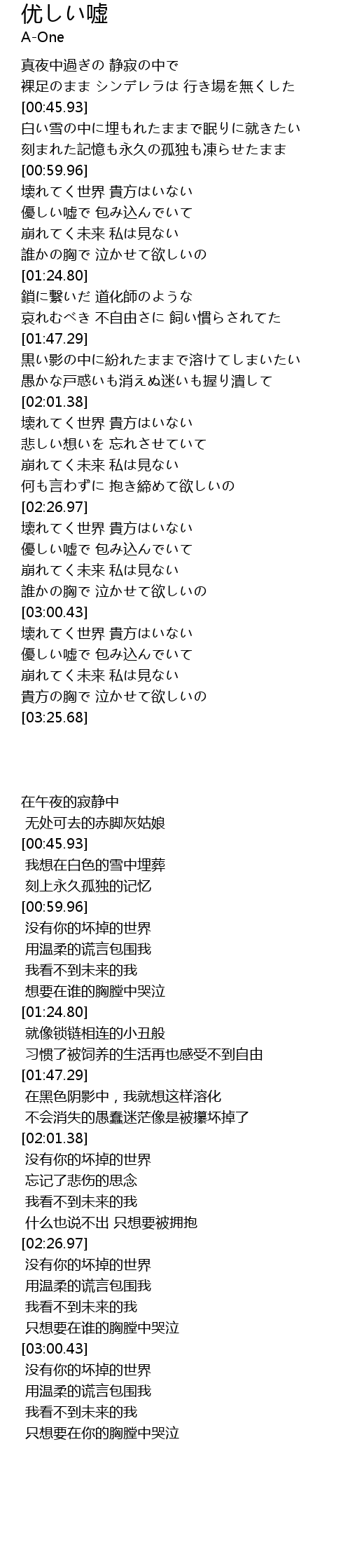 | [03:07.23] | 優しい嘘で 包み込んでいて |