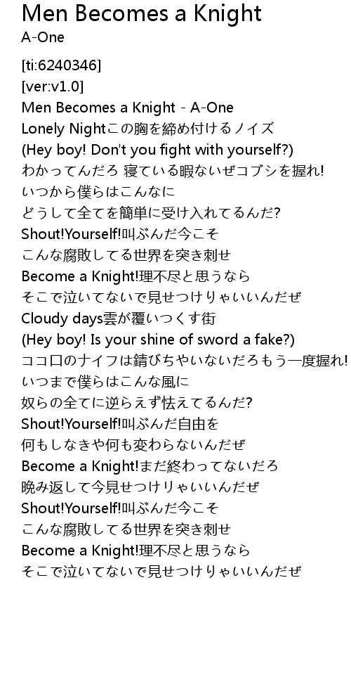 | [00:02.13] | Men Becomes a Knight - A-One |