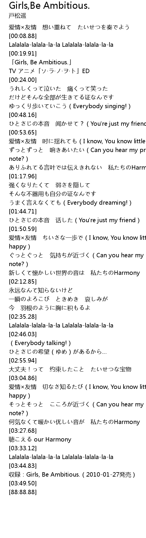 | [03:47.50] | shōu lù: Girls, Be Ambitious. 20100127 fā mài |