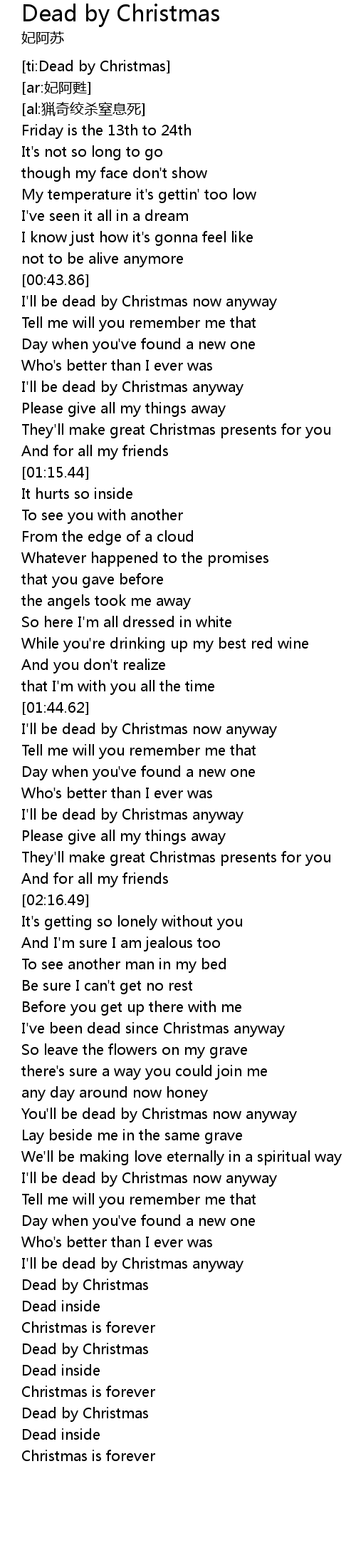 | [04:00.39] | Dead by Christmas |