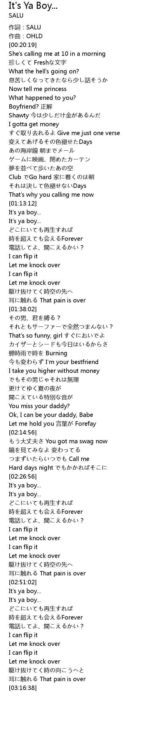 | [01:04:84] | Club でGo hard 家に着くのは朝 |