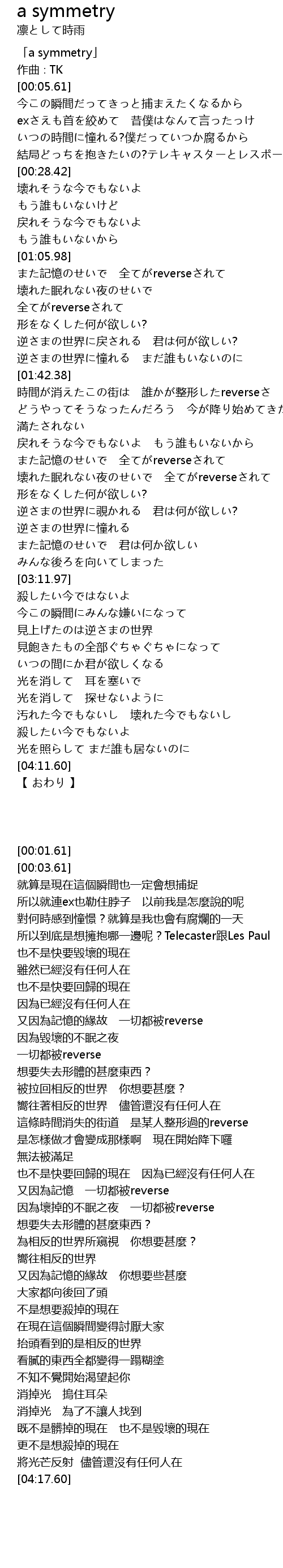 | [00:01.61] | 「a symmetry」 |