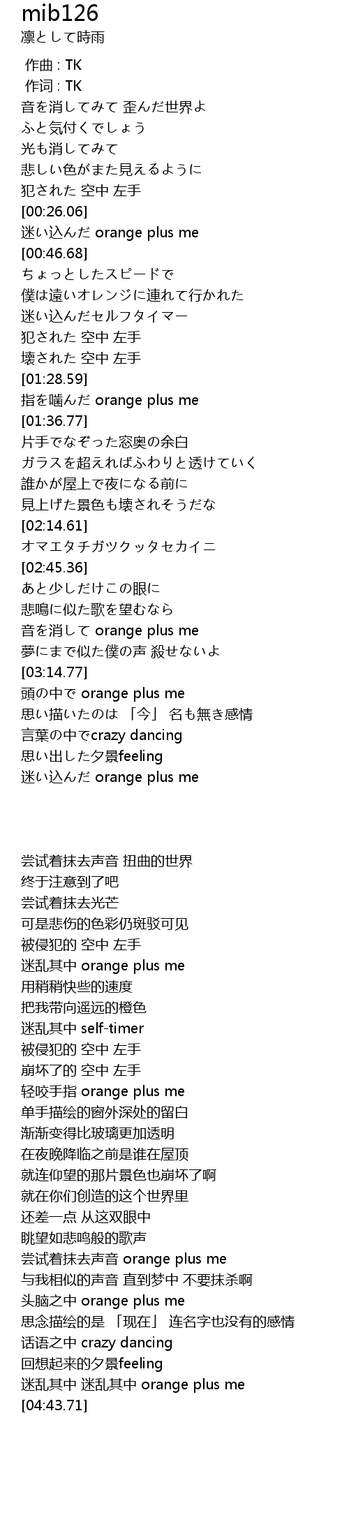 | [03:04.70] | 音を消して orange plus me |