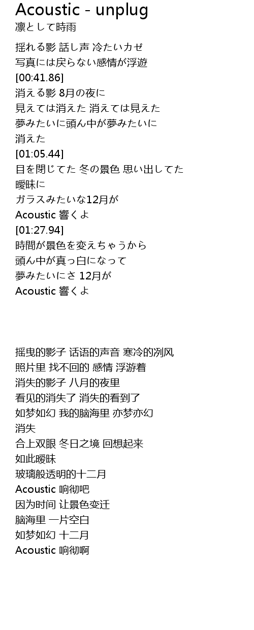 | [00:21.09] | 揺れる影 話し声 冷たいカゼ |