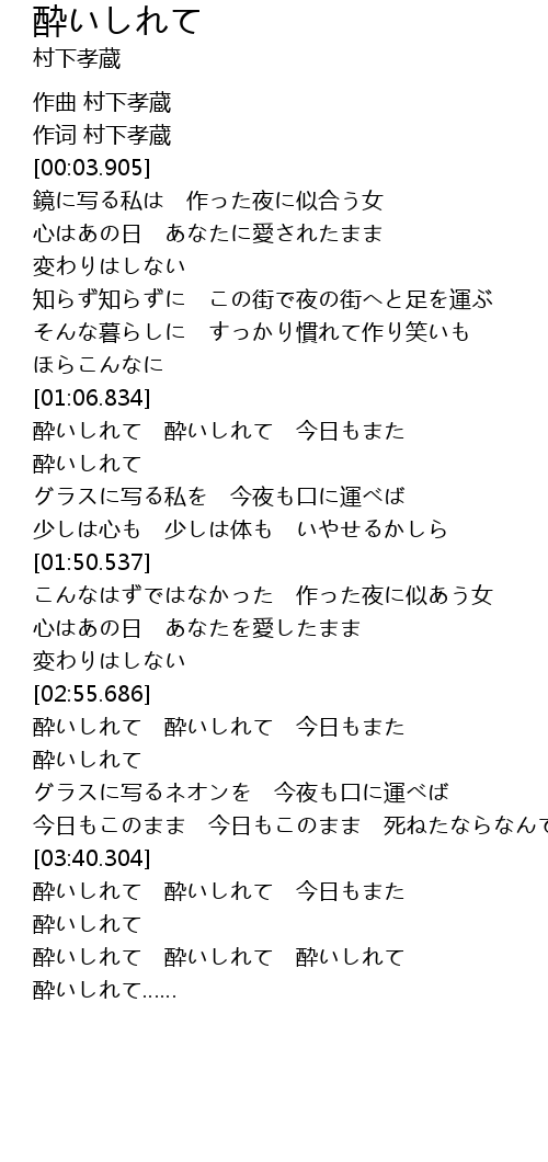 | [03:55.220] | 酔いしれて 酔いしれて 酔いしれて |