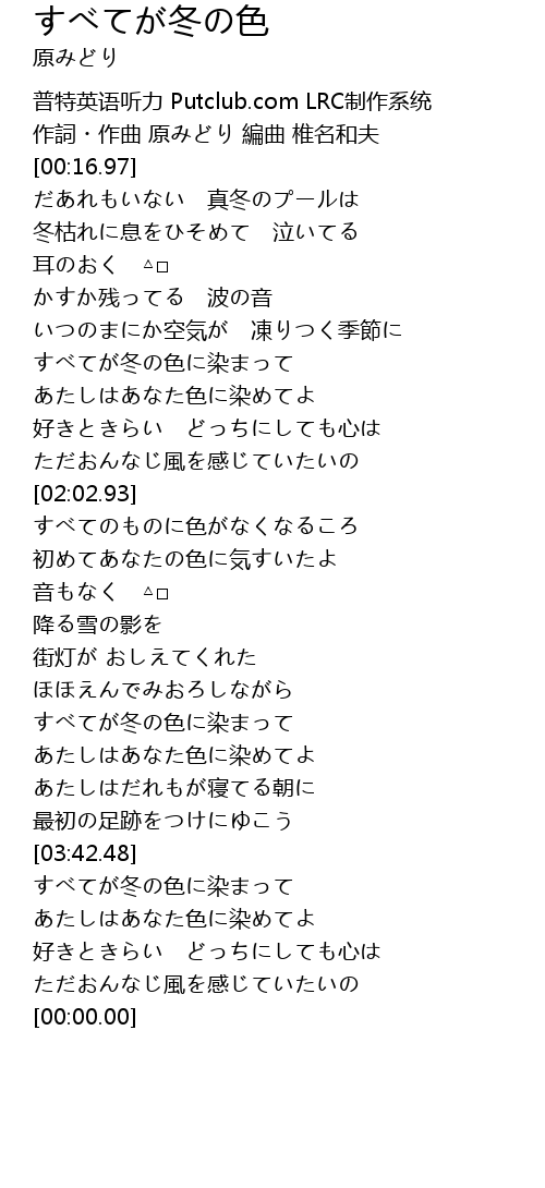 | [00:41.24] | 冬枯れに息をひそめて 泣いてる |