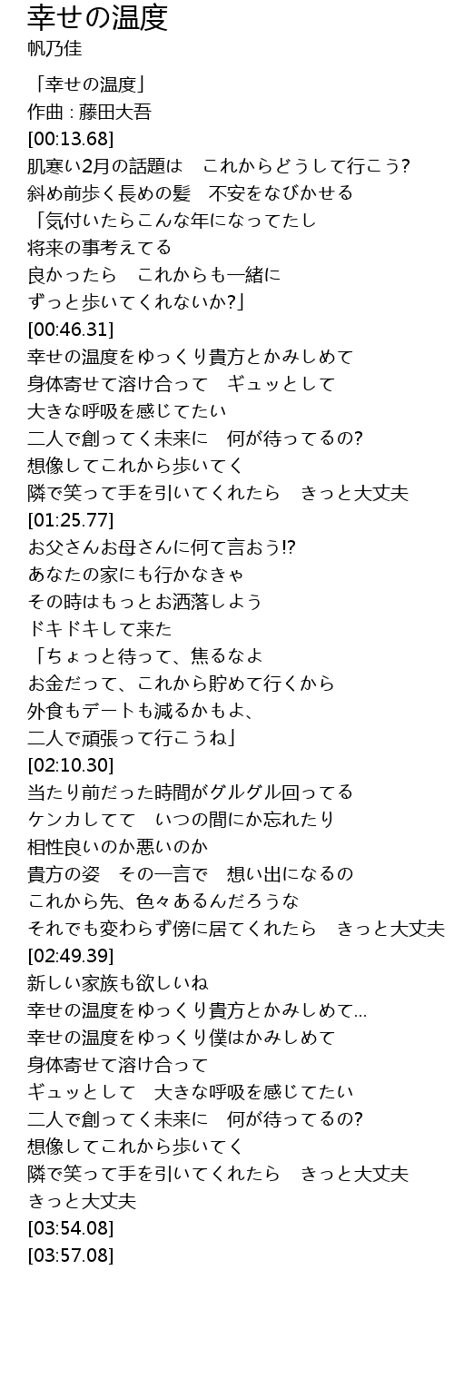 | [00:01.68] | 「幸せの温度」 |