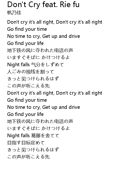 | Don' t cry it' s all right, Don' t cry it' s all right | |