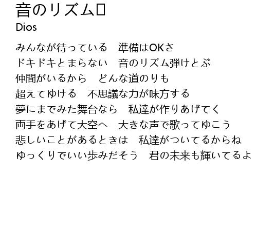 | [00:14.99] | ドキドキとまらない 音のリズム弾けとぶ |