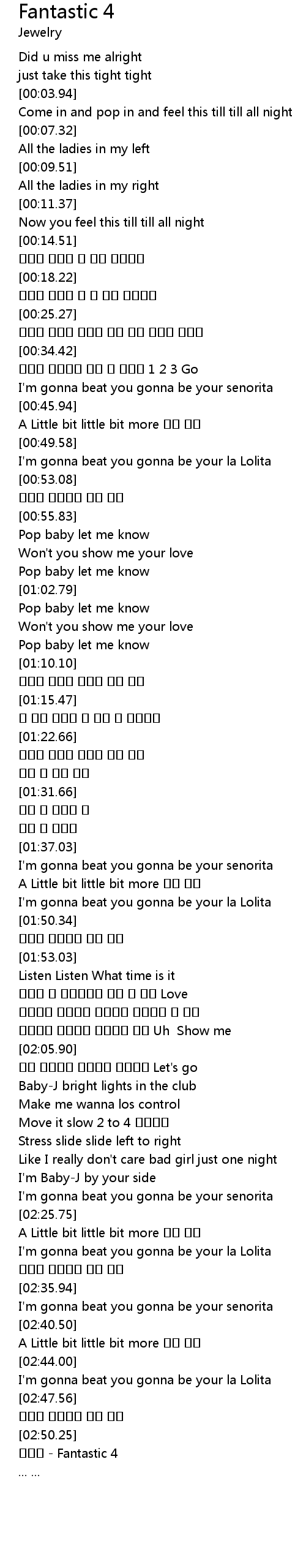 | [02:51.37] | 쥬얼리 - Fantastic 4 |