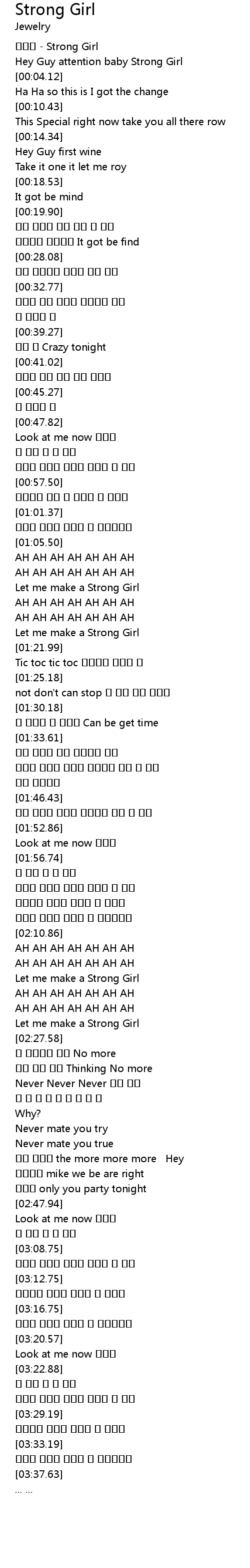 | [00:00.18] | 쥬얼리 - Strong Girl |