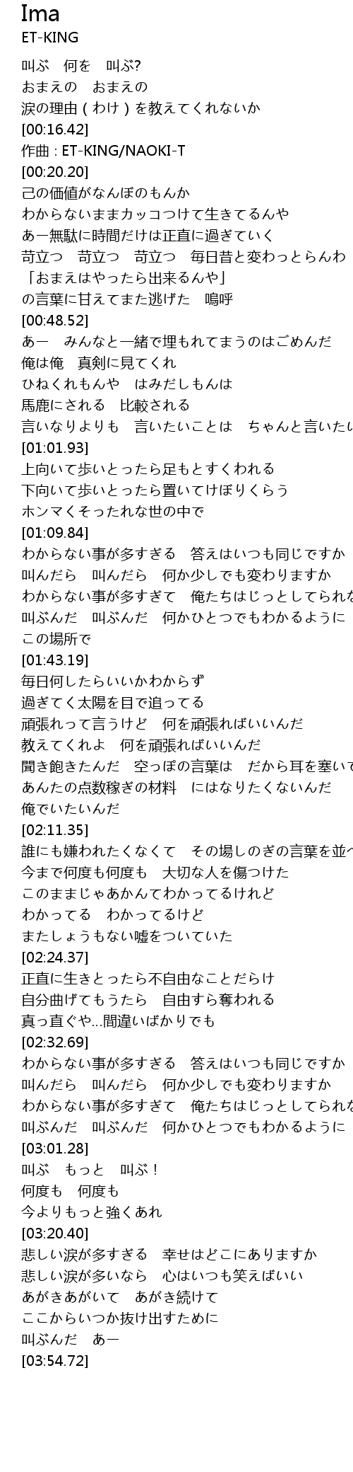 | [00:00.77] | 叫ぶ 何を 叫ぶ? |