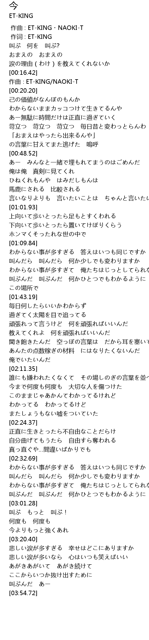 | [00:00.00] | 作曲 : ET-KING・NAOKI-T |