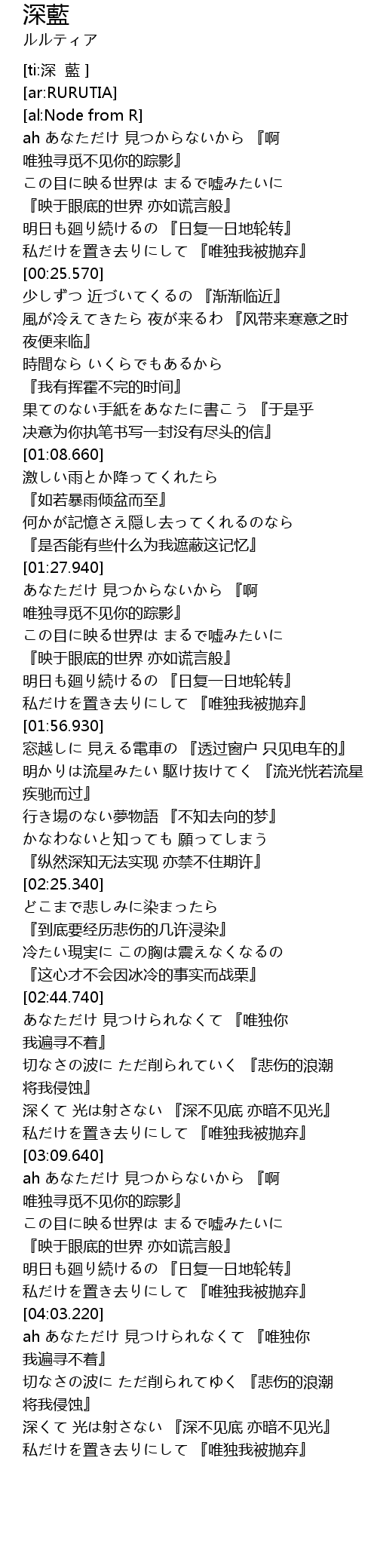 | [02:56.010] | 深くて 光は射さない 『深不见底 亦暗不见光』 |