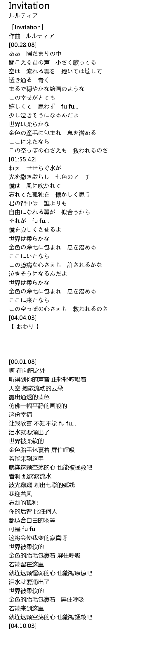 | [00:01.08] | 「Invitation」 |