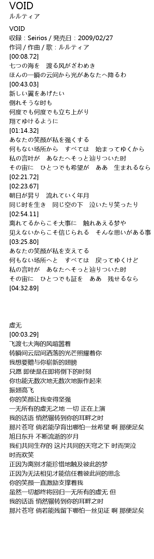 | [00:03.29] | 収録:Seirios/発売日:2009/02/27 |