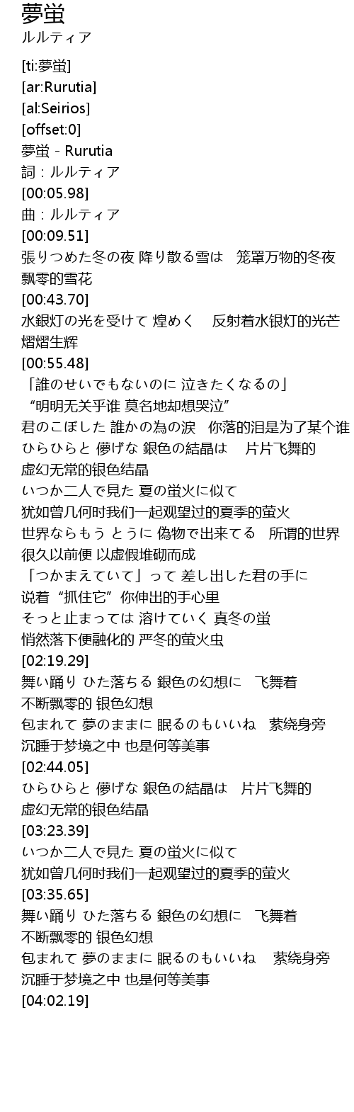 | [00:01.18] | 夢蛍 - Rurutia |