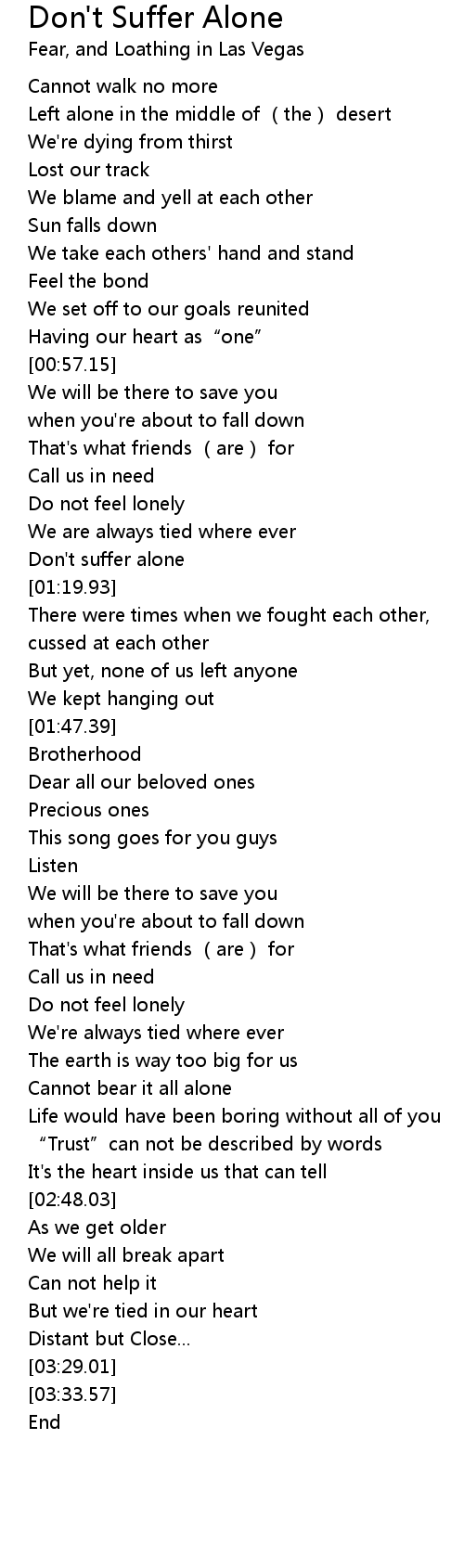| [01:16.29] | Don' t suffer alone |