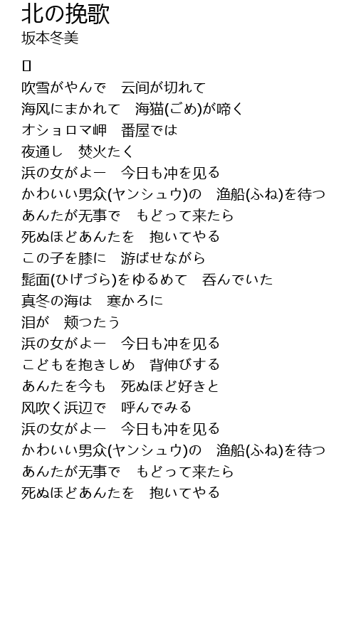 | Song | 北の挽歌 |