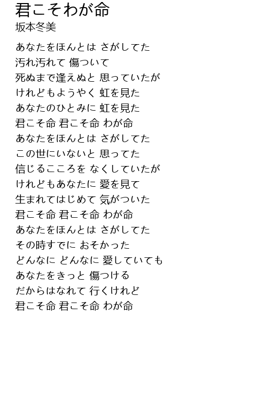 | 君こそ命 君こそ命 わが命 |