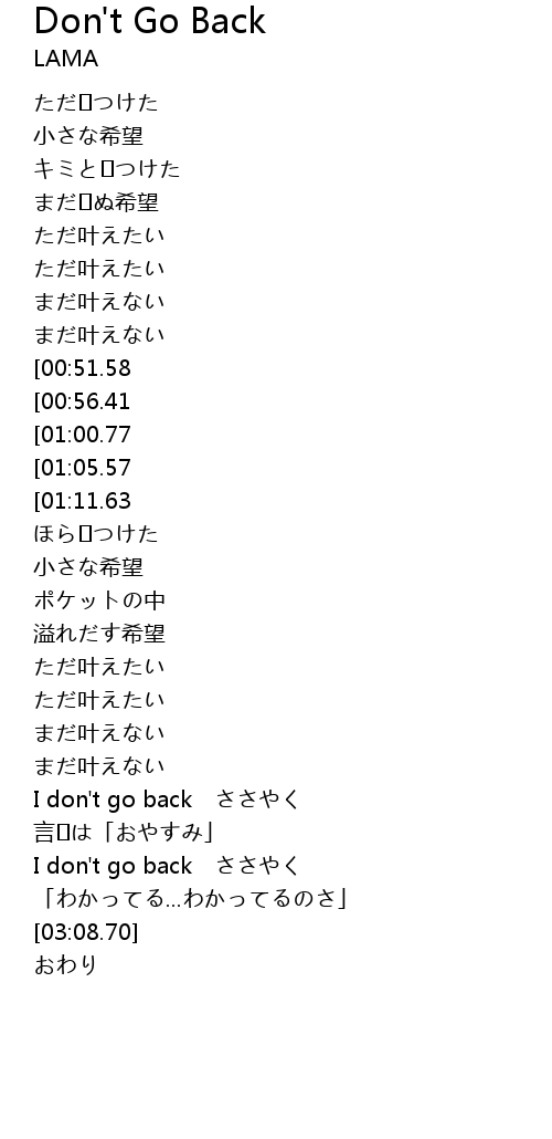 I don't go back ささやく |