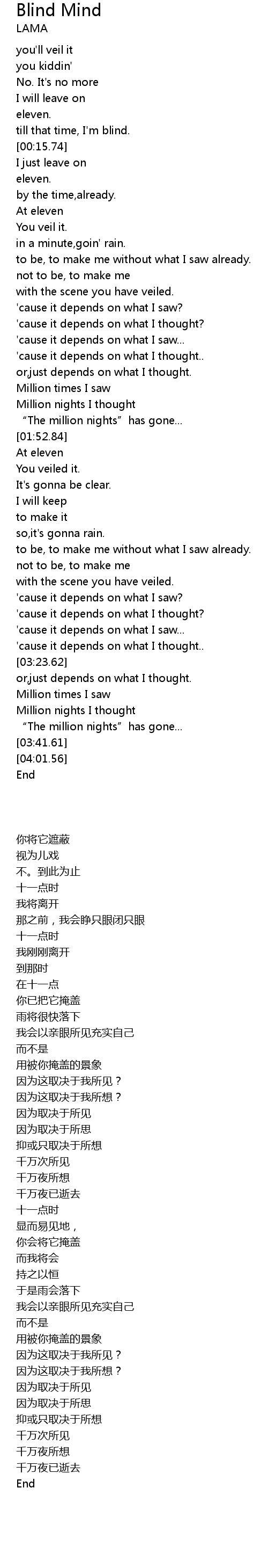 | [00:12.98] | till that time, I' m blind. |