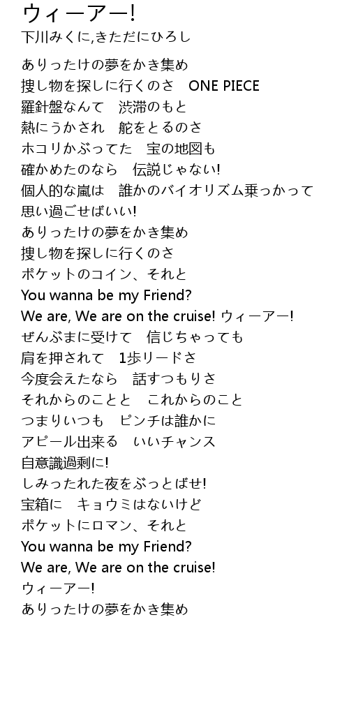 [00:36.89] 捜し物を探しに行くのさ ONE PIECE