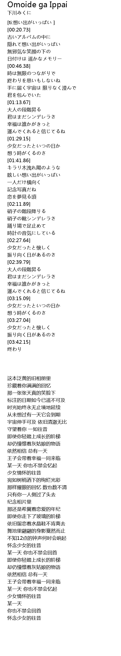 | [03:15.61] | 少女だったといつの日か |