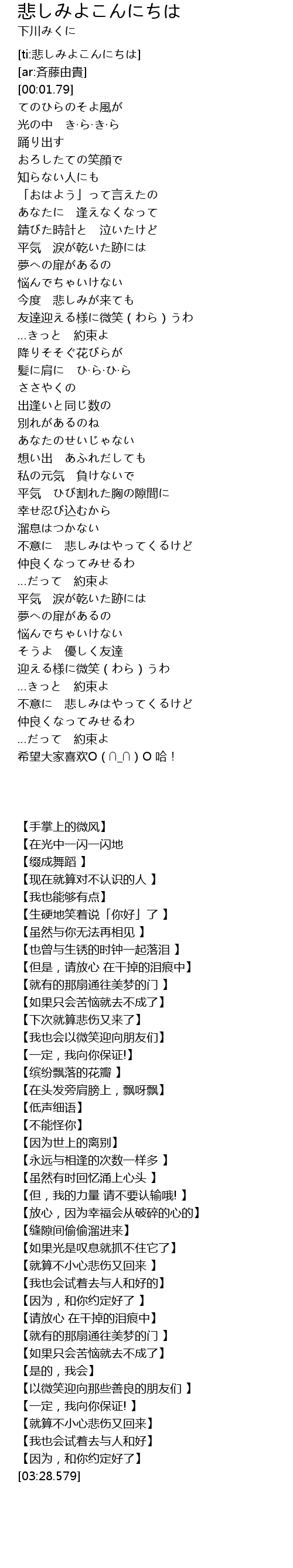 | [03:28.579] | xi wang da jia xi huan O _ O ha! |