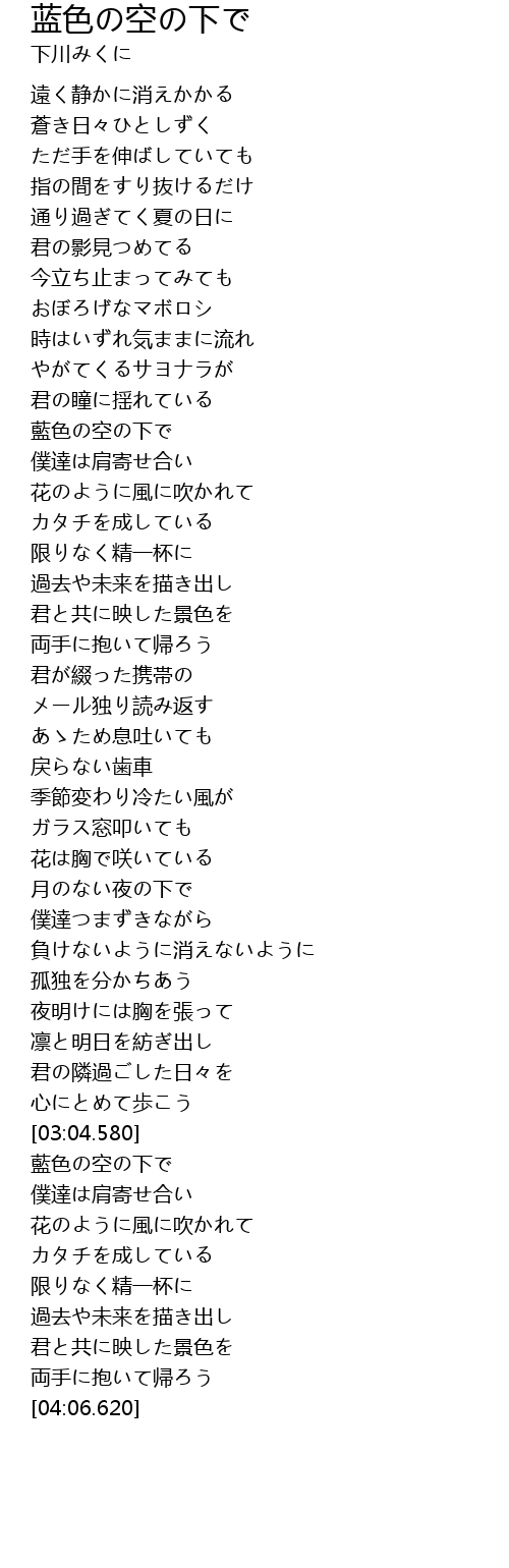 | [00:41.120] | 通り過ぎてく夏の日に |