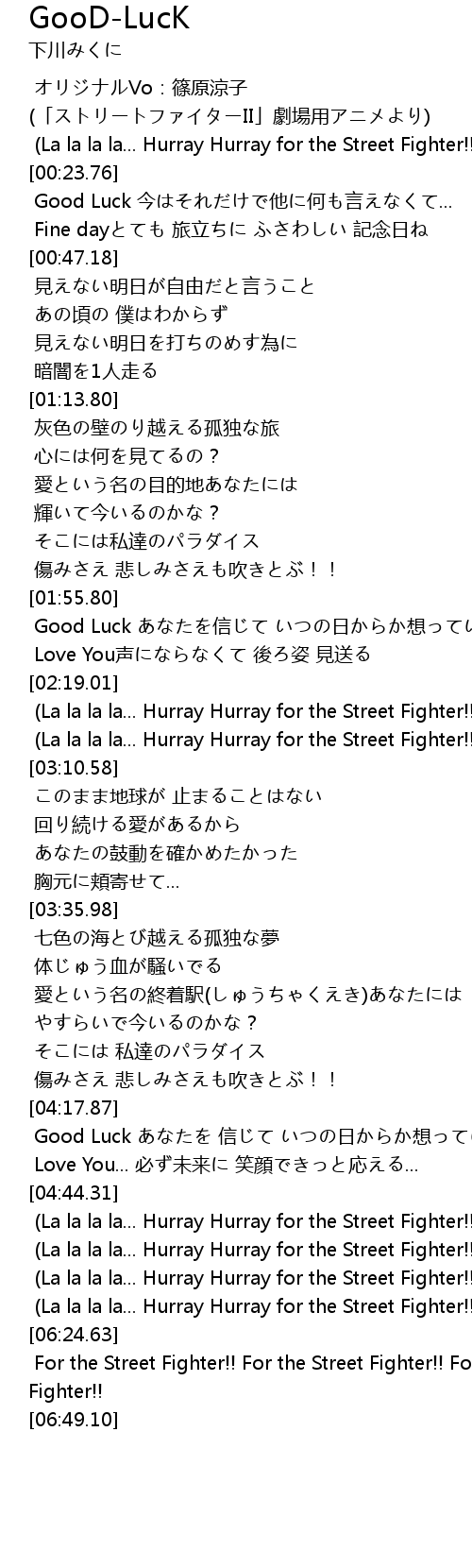 | [00:00.09] | オリジナルVo:篠原涼子 (「ストリートファイターII」劇場用アニメより) |