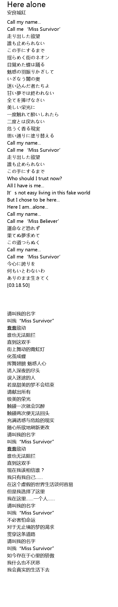 | [03:00.50] | Call me‘Miss Survivor’ |