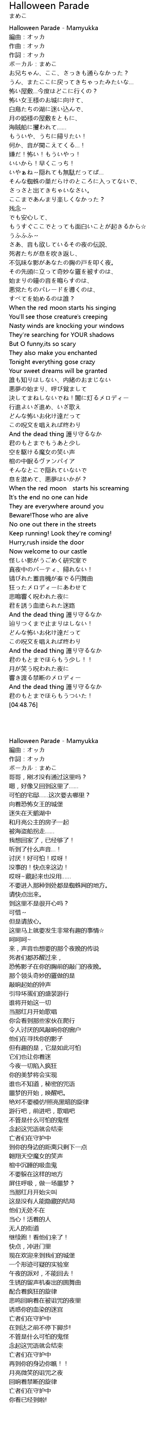 | [00:01.90] | Halloween Parade Mamyukka |