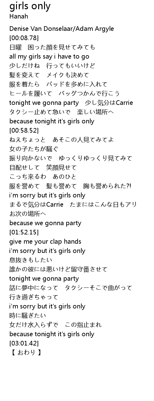 | [00:54.48] | because tonight it's girls only |