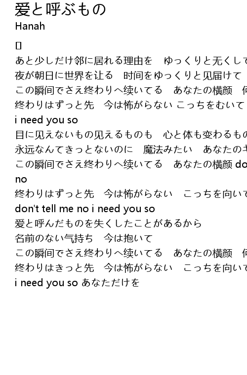 | この瞬间でさえ终わりへ续いてる あなたの横颜 don't tell me no | |