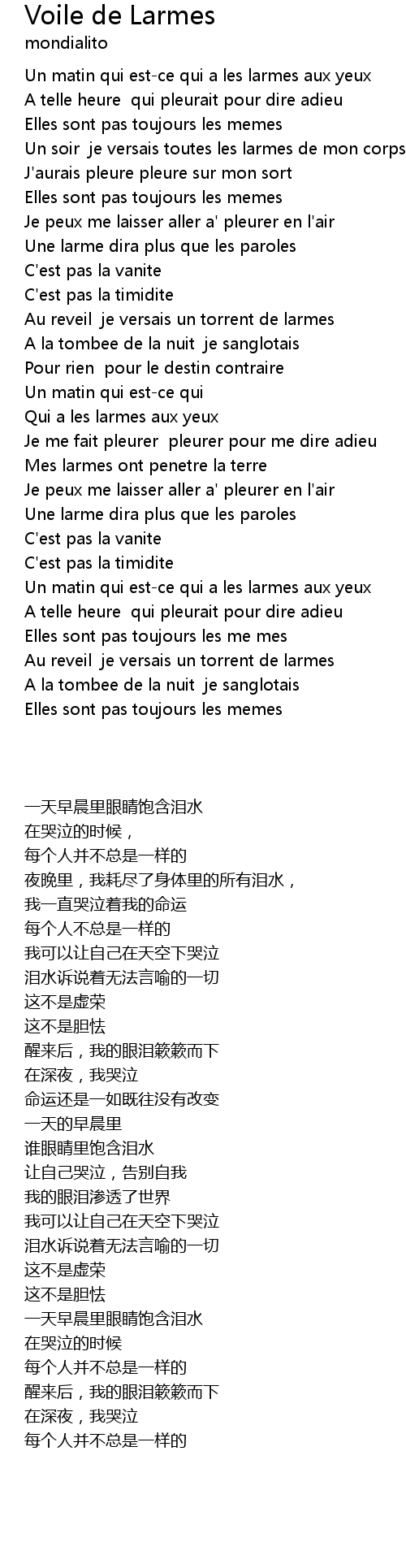 Une larme dira plus que les paroles |