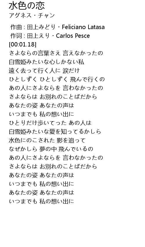 | [00:00.339] | 作词 : 田上えり・Carlos Pesce |